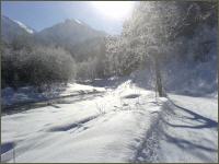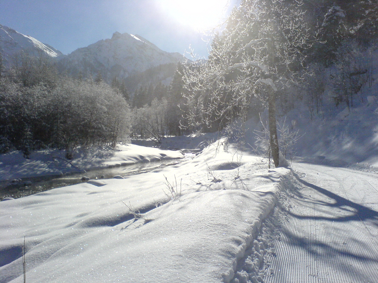 Im Winter sind Sie herzlich eingeladen in dem nur 10km entfernten Skigebiet Oberjoch kostenlos Ski zu fahren. Weiter sind im Winter immer hervorragend präparierte Langlaufloipen vorhanden. Hier ein Beispielbild der Loipe in Hinterstein.